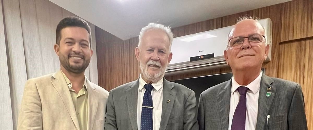 O Diretor de Governança da Telebras, Wallyson Oliveira, se reuniu com o presidente do Tribunal Regional Eleitoral do Tocantins (TRE-TO), Desembargador João Rigo Guimarães (centro da foto), e com o corregedor, Desembargador Helvécio de Maia Brito Neto (à direita).