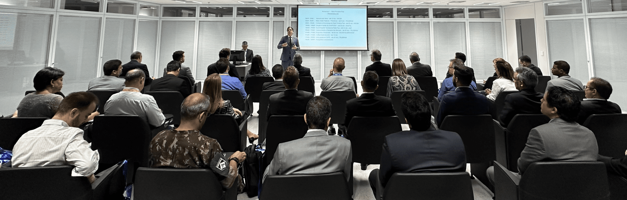 Mais de 50 profissionais de telecomunicações e tecnologia da informação de diversos órgãos da Administração Pública Federal participaram da reunião na manhã desta quinta-feira, 26, onde foram apresentadas as principais características técnicas, os requisitos de segurança com criptografia de Estado e as oportunidades de produtos e serviços a serem implementados na Rede Privativa Fixa Segura e de Alta Velocidade do Governo Federal. O encontro, conduzido pelo Ministério das Comunicações (MCom) e pela Telebras, foi realizado no Centro de Operações Espaciais da estatal, em Brasília, e contou com a presença da diretoria executiva da empresa.
